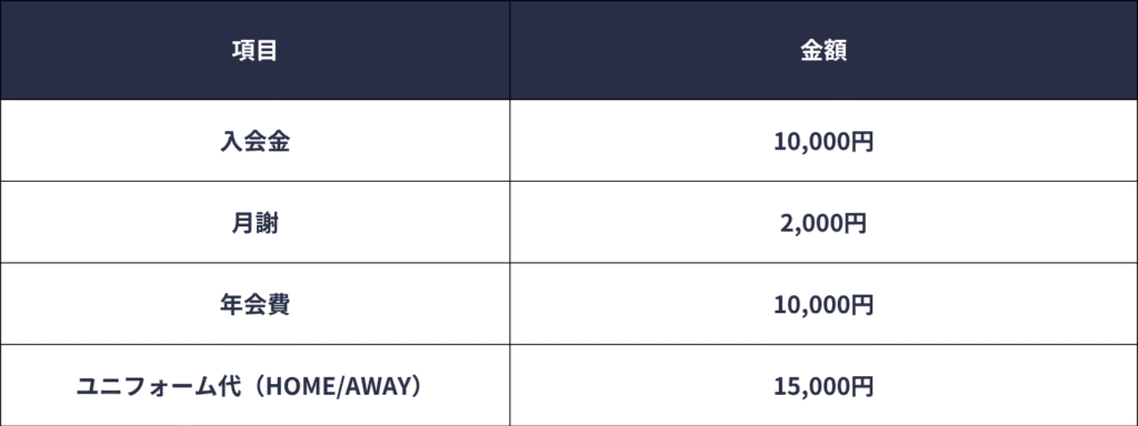 ※ユニフォーム代には、HOME/AWAY両方のユニフォーム上下・ソックスが含まれます。